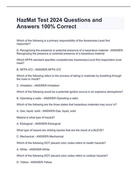 Download Free Questions And Answers For Hazmat Test Doc