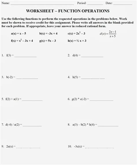Read Function Operations Worksheet Answers Doc
